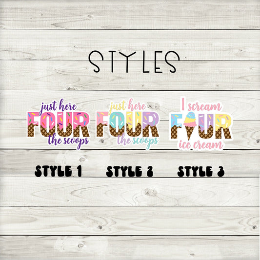 I’m Just Here Four The Scoops Ice Cream Birthday Party Cupcake Toppers (Set of 12)