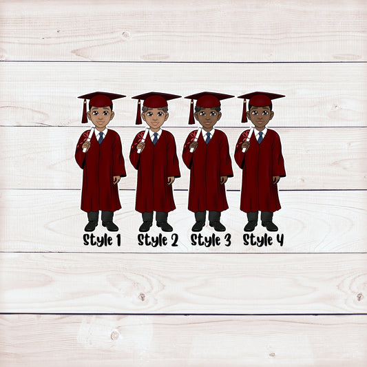 Maroon Graduation Party Cupcake Toppers: African American Male (Set of 12)