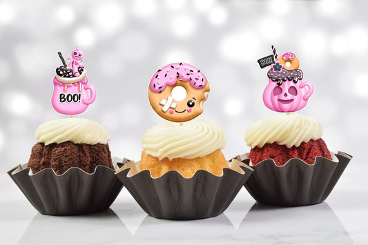 Pink Glam Halloween Cupcake Toppers (Set of 9)