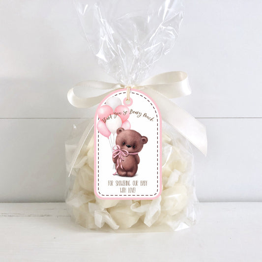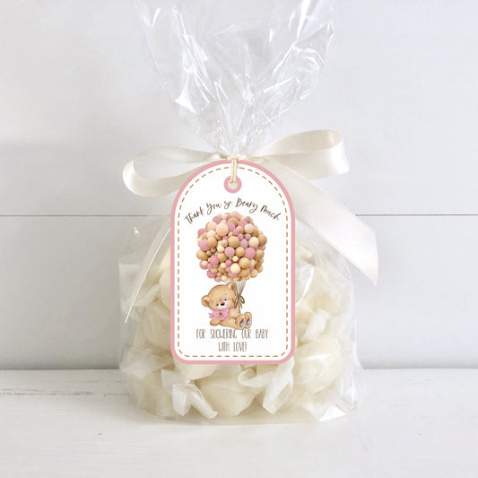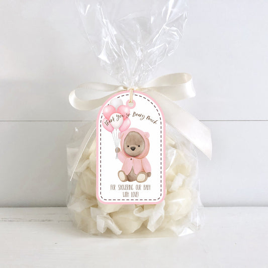 Teddy Bear Baby Shower Favor Tags: Pink & Brown, Set of 6