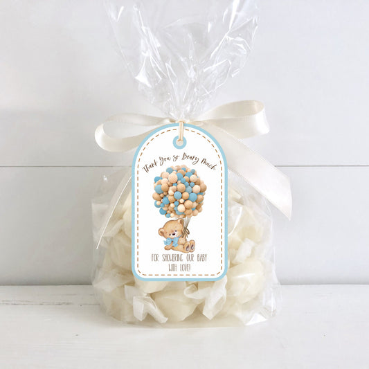 Teddy Bear Baby Shower Favor Tags: Blue & Brown Gift Tags, Set of 6