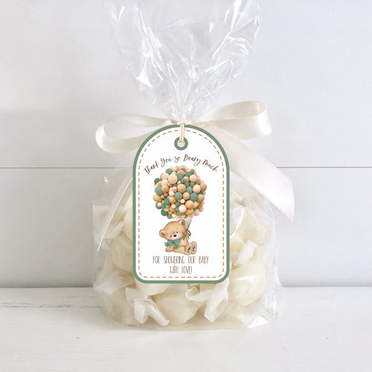 Teddy Bear Baby Shower Favor Tags: Green & Brown, Set of 6