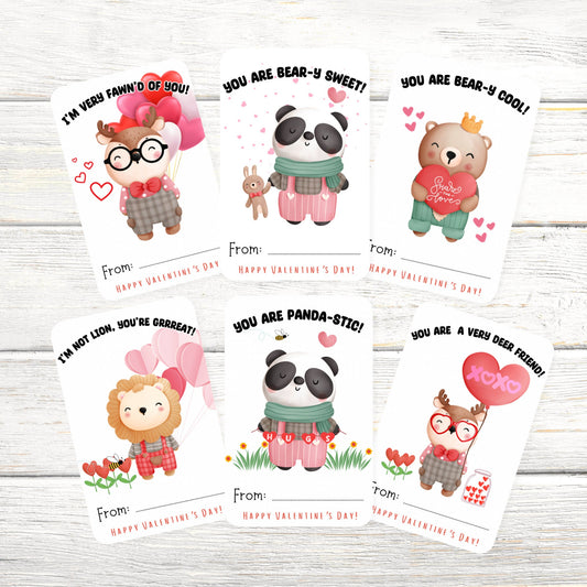 Woodland Animals Valentine's Day Cards or Stickers: Kids Classroom Party, Set of 12