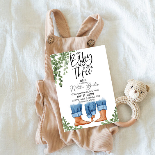 Eucalyptus Baby Shower Invitations: Minimalist 'And Baby Makes Three' (Digital Download)